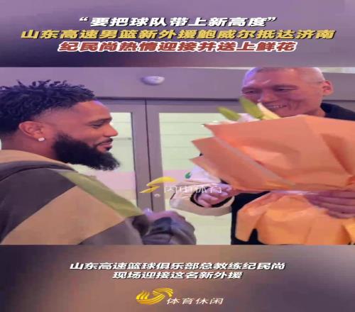 闪电体育10月22日宣 今天上午,山东高速男篮正式官宣迈尔斯-鲍威尔加盟球队。当晚,鲍威尔便抵达济南,山东高速篮球俱乐部总教练纪民尚也在现场迎接,并为其送上鲜花。鲍威尔露面后,始终和善面带微笑,口中还不时呼喊着“山东加油”的中文,展现出对球队和球迷的热情。